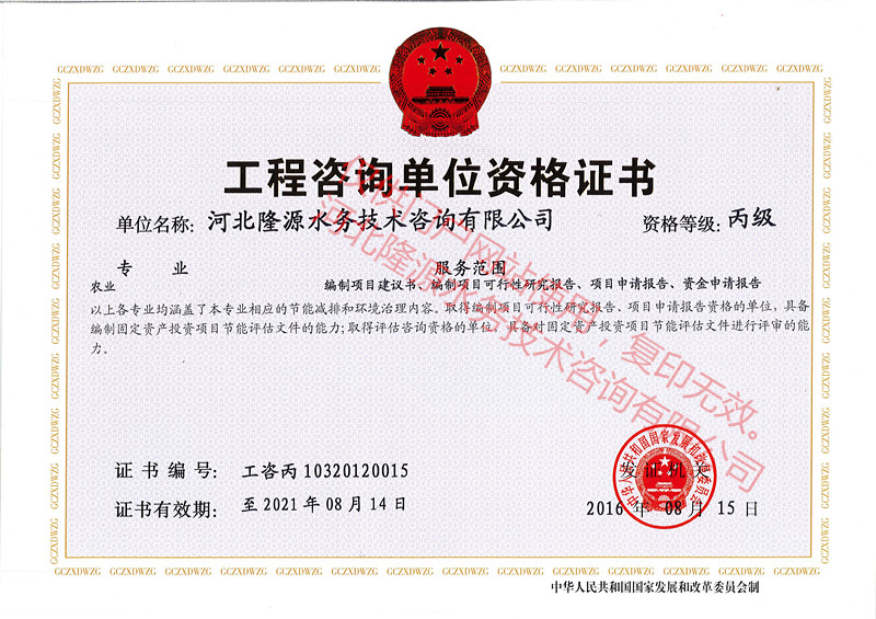 工程咨询单位资格证书农业丙级