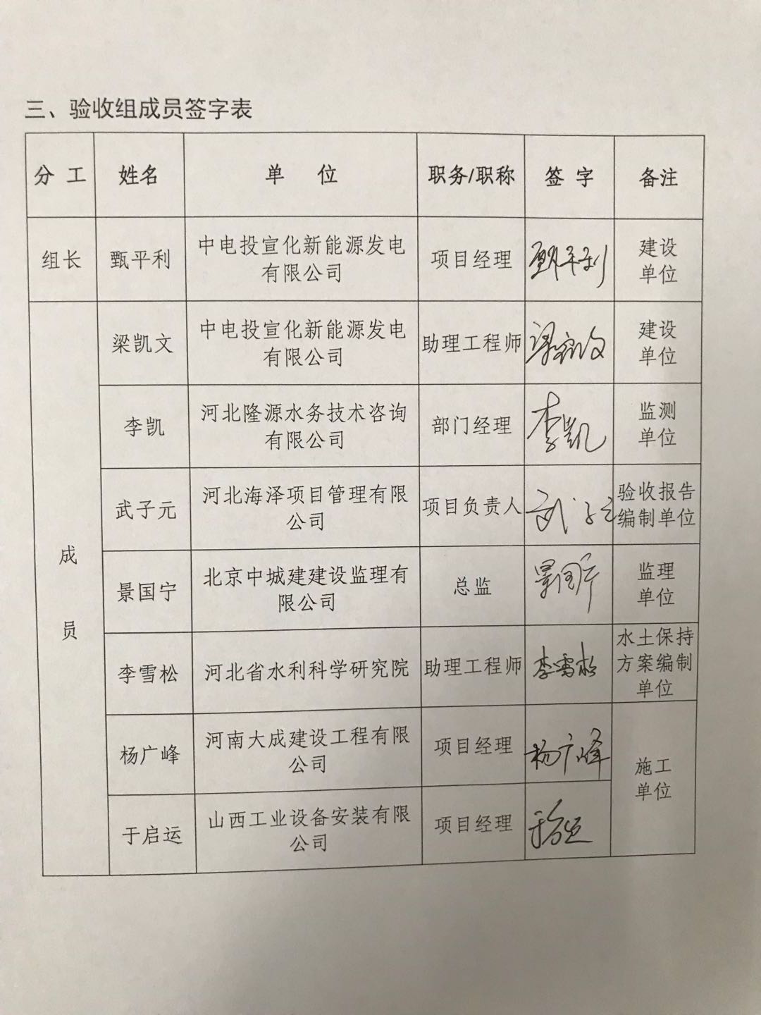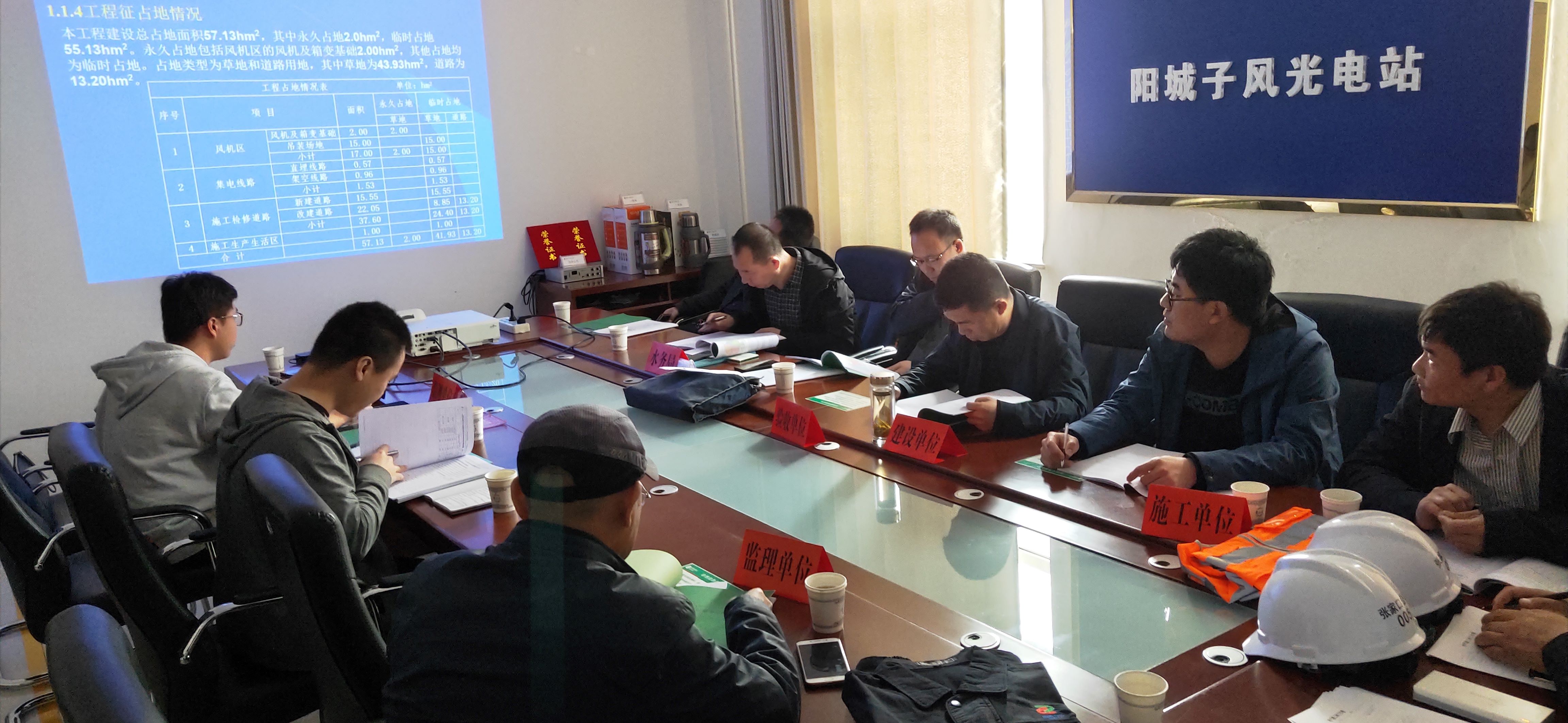 根据《水利部关于加强事中事后监管规范生产建设项目水土保持设施自主验收的通知》,2019年4月19日,在张家口市宣化区组织召开了中电投宣化风光互补二期100兆瓦风电场项目水土保持设施验收会。参加会议的有建设单位、水土保持设施验收报告编制单位、水土保持方案编制单位、施工单位、监理单位和水土保持监测单位的代表,与会人员成立了验收组,并邀请宣化区水务局工作人员进行指导。