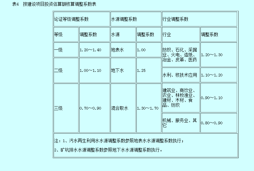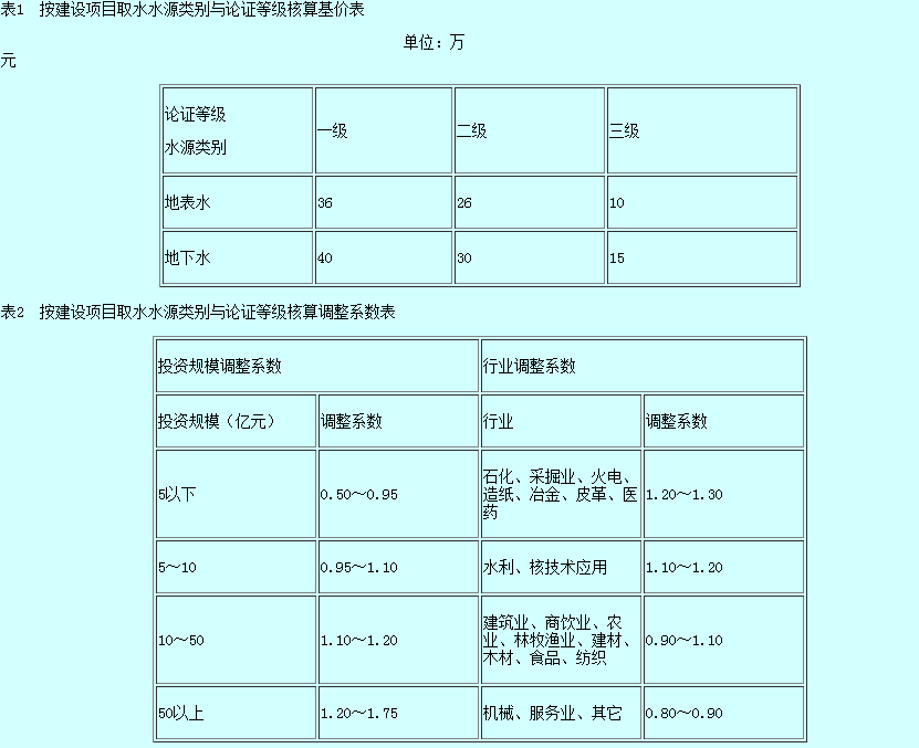 二、建设项目水资源论证报告书(以下简称报告书)编制费用核算方法包括以建设项目取水水源类别和论证等级为主要因素的报告书编制费用核算方法和以建设项目投资规模为主要因素的报告书编制费用核算方法两种。报告书编制费用根据本核算方法确定。